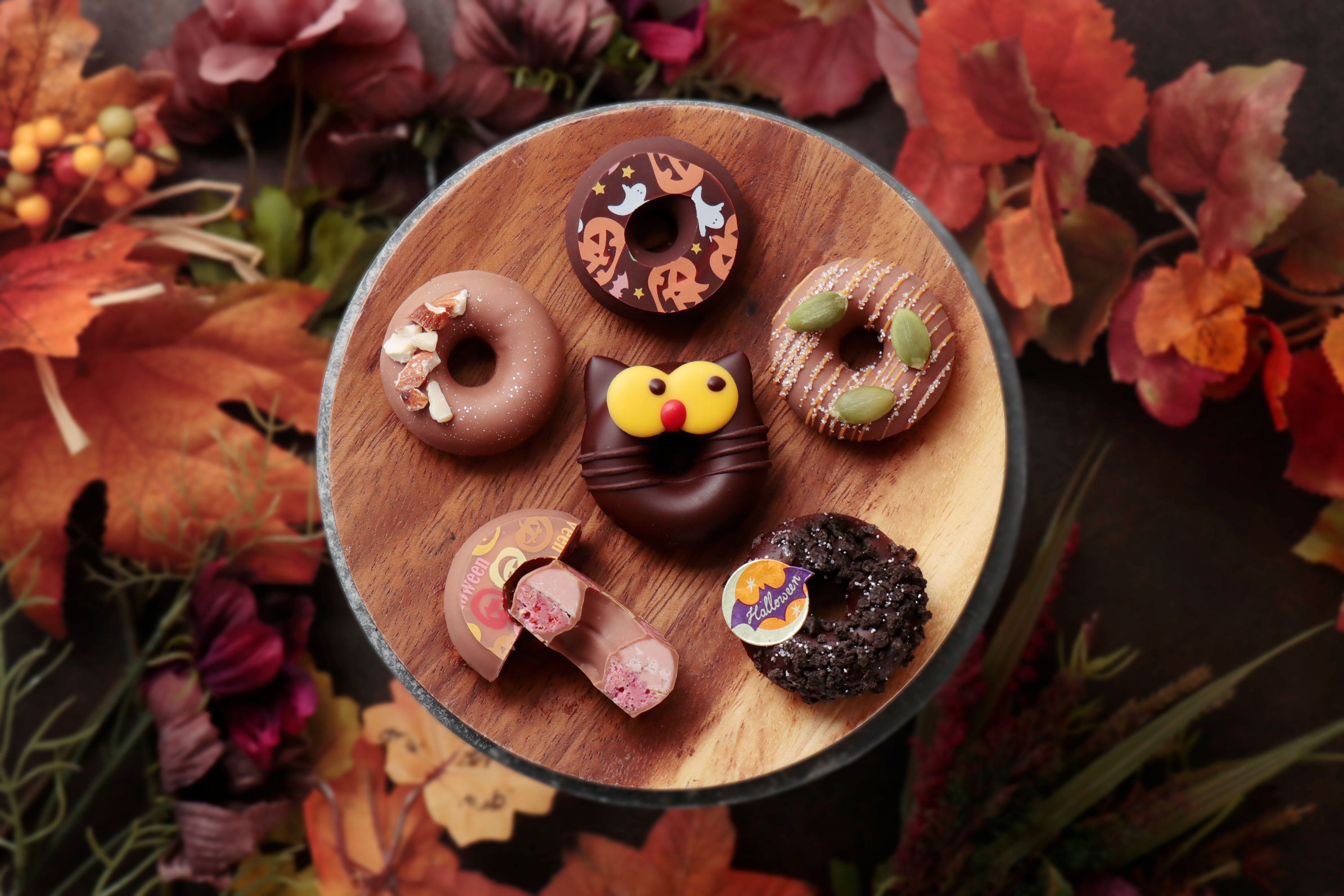 可愛らしいハロウィンデザインのドーナツ型ショコラ。2層仕立てで食感も楽しく、職人技が光るショコラたち。