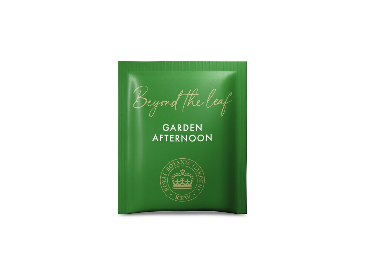 2022年3月より販売開始となったリーフティー缶(4アイテム)に加えてこの秋登場する新作は、4種類のティーバッグを1つに詰め合わせたセレクション缶。ボタニカルをコンセプトとした高級感のあるパッケージには、キューガーデンのロゴがあしらわれています。