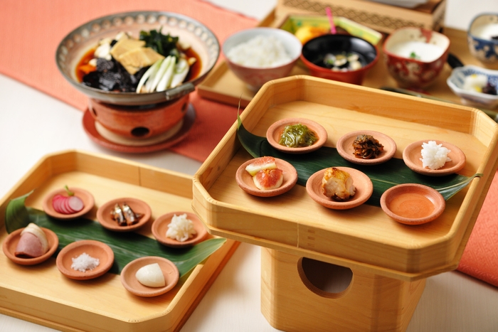 「神饌」とは神様に献上する食事を意味します。古来より神饌で最も重んじられてきた三つの要素「米・塩・水」の他、川魚、海魚、野菜、海草といった神饌の要素を取り入れた特別な朝食です(*2)。神様と同じ食事をいただくことで、より強いご縁を祈願します。専用プランにて、12月から提供を開始します。(*2)神社本庁ホームページ