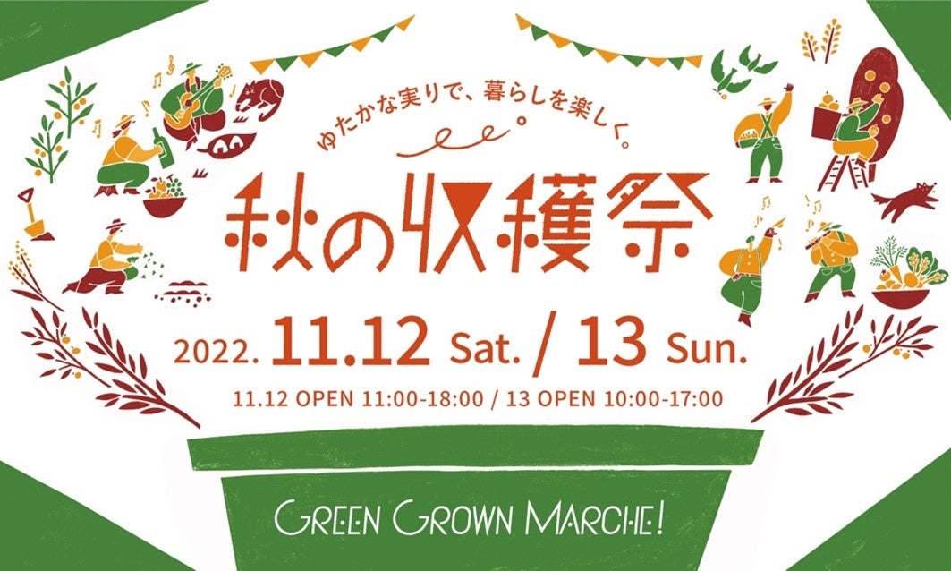 毎週火曜日に開催しているGREEN GROWN MARCHE!の拡大版として、野菜や果物、種苗、加工品(焼き菓子、調味料、コーヒー)パン等の「食」を中心とした、マルシェ(35店舗予定)と、トクマルシューゴ、COINN、佐々木健太郎(アナログフィッシュ)のフリーライブ、当日気軽に参加できる造形作家あいざわいさな氏によるオリジナルハンカチづくりのワークショップを開催します。
