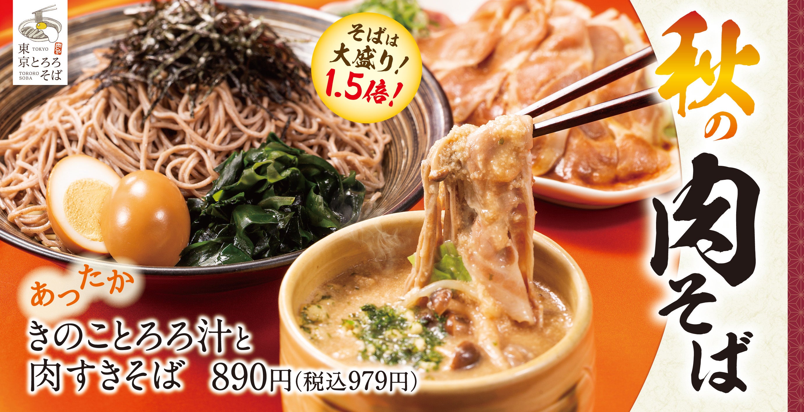 とろろそば専門店「東京とろろそば」に、ひとくちで秋の味覚を頬張るあったかメニュー「きのことろろ汁と肉すきそば」が新登場。