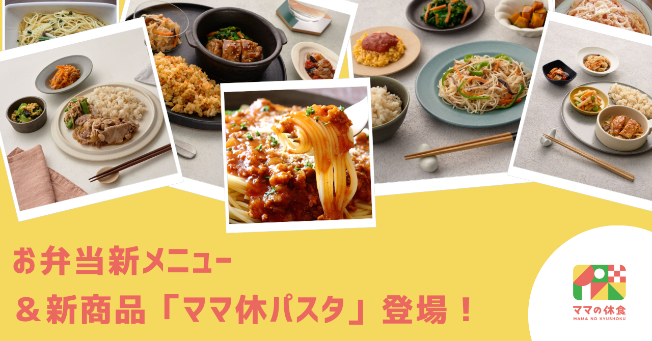 株式会社MYPLATE(本社:東京都渋谷区、代表取締役:川端史紀)が運営する、“ママに休養と栄養を届ける”宅食サービス「ママの休食(ままのきゅうしょく)」は、10月12日(水)よりお弁当新メニュー4品と新商品の葉酸入り「ママ休パスタ」3品の販売を開始いたします。葉酸入りパスタは、葉酸が不足しやすいという日本の社会課題を解決すべく、商品開発を行いました。ぜひお試しください。