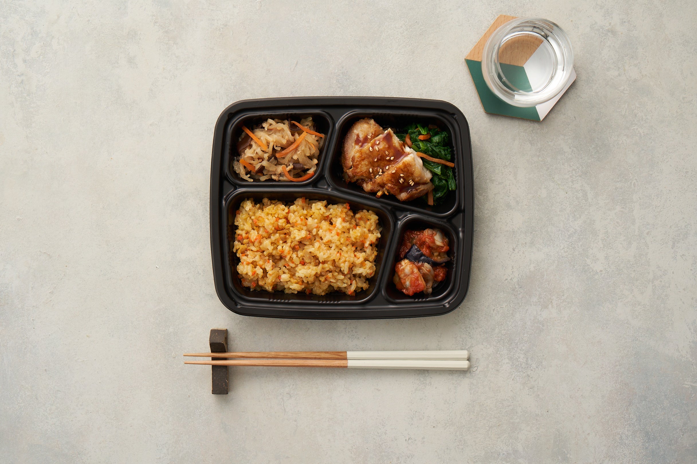 鶏肉のおかずに合うように、優しい味わいのドライカレーを作りました。温めた際のカレーの香りに食欲が注がれます。またドライカレーにはみじん切りにした人参が入っているので、お野菜嫌いな方でも野菜が美味しく食べられる工夫もしています。