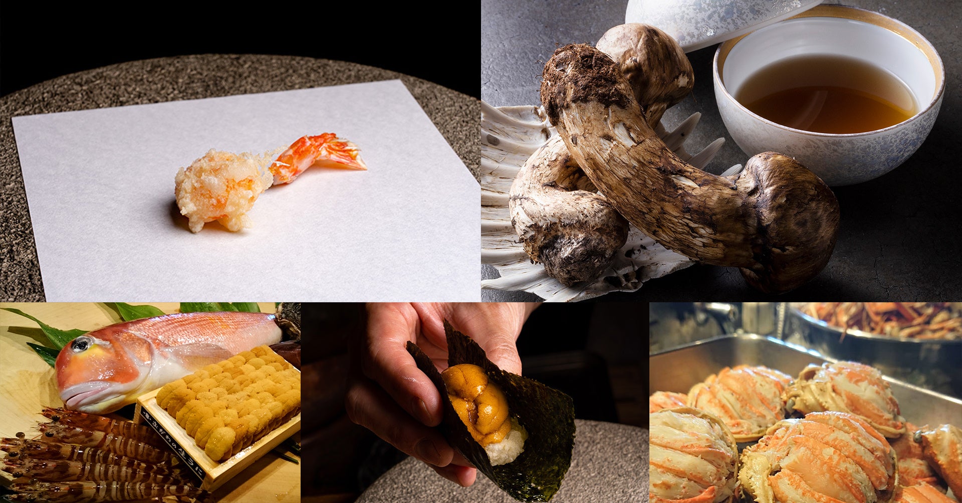 「もっこす」自慢の”大都水産セリ01番の生うに”はもちろん、この時期限定、”香住の香箱蟹”を使用した天麩羅をはじめ、白井屋の「ザ・レストラン」の片山の上州キュイジーヌのスペシャリテなど、贅を尽くした新鮮食材の天麩羅とフランス料理の技が融合した、他では味わえない特別仕立てのコースをご堪能いただきます。