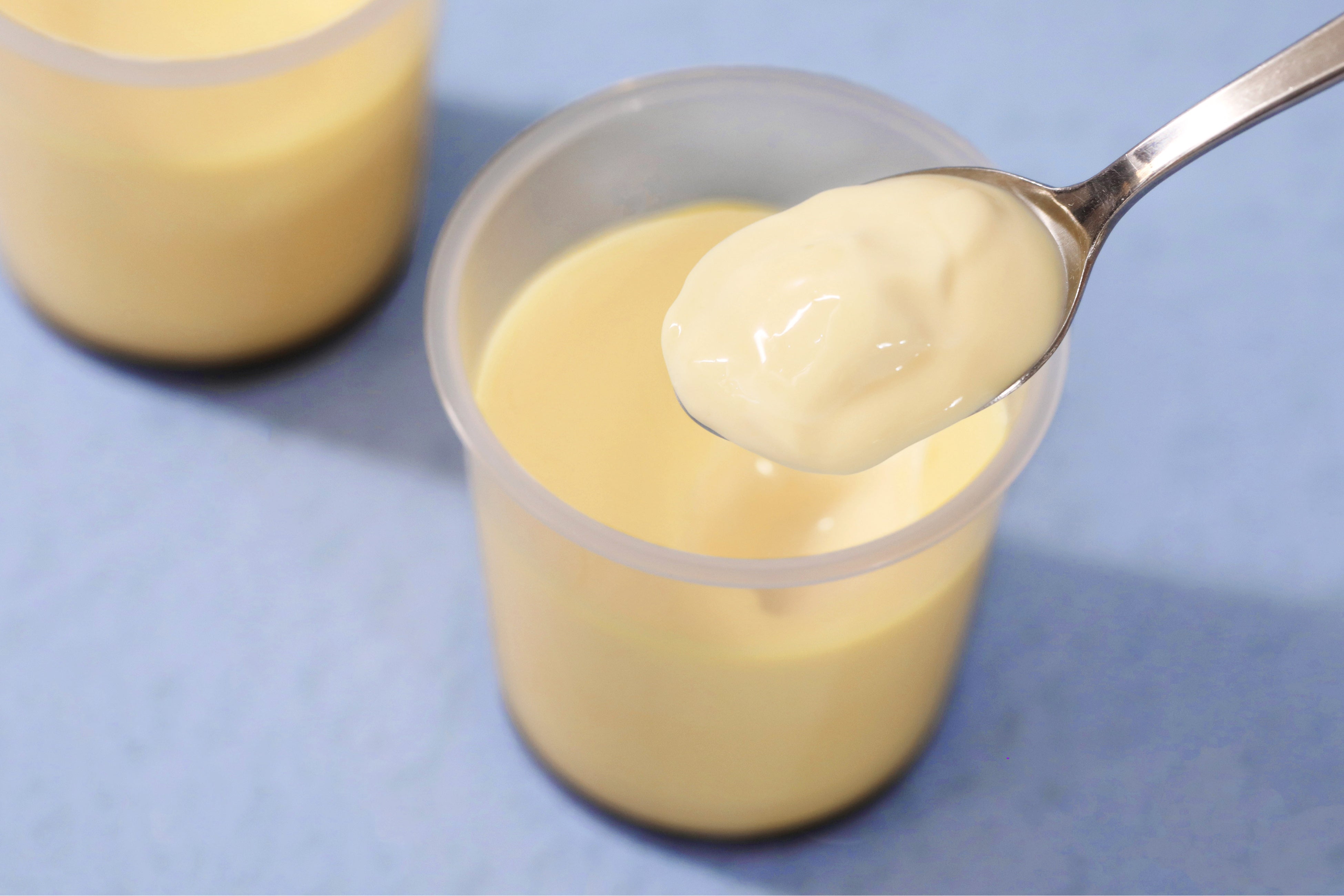 ”プリン味のドリンク”というより、まるでなめらかでとろとろのプリンを”そのまま”いれたかのような味わいのプリンドリンクに仕上げた当商品。お召し上がりの際は、ストローをさす前によく振ってからお召し上がりください。振り方によって、ご自身でなめらかさ加減を調節してお楽しみいただくこともおすすめです。