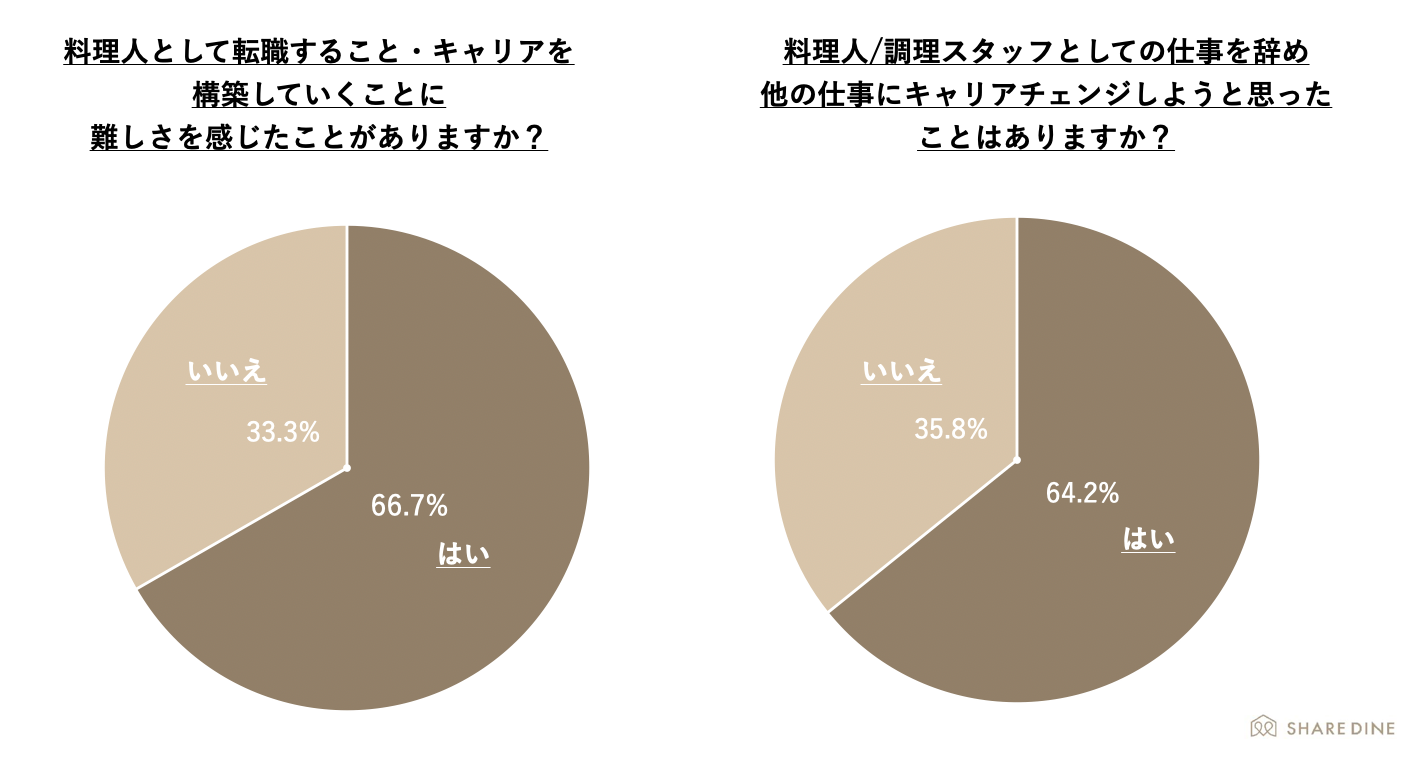 料理人/調理スタッフとしての仕事を辞め、他の仕事にキャリアチェンジしようと思ったことはありますか、との質問には、64.2%が「はい」と回答しました。