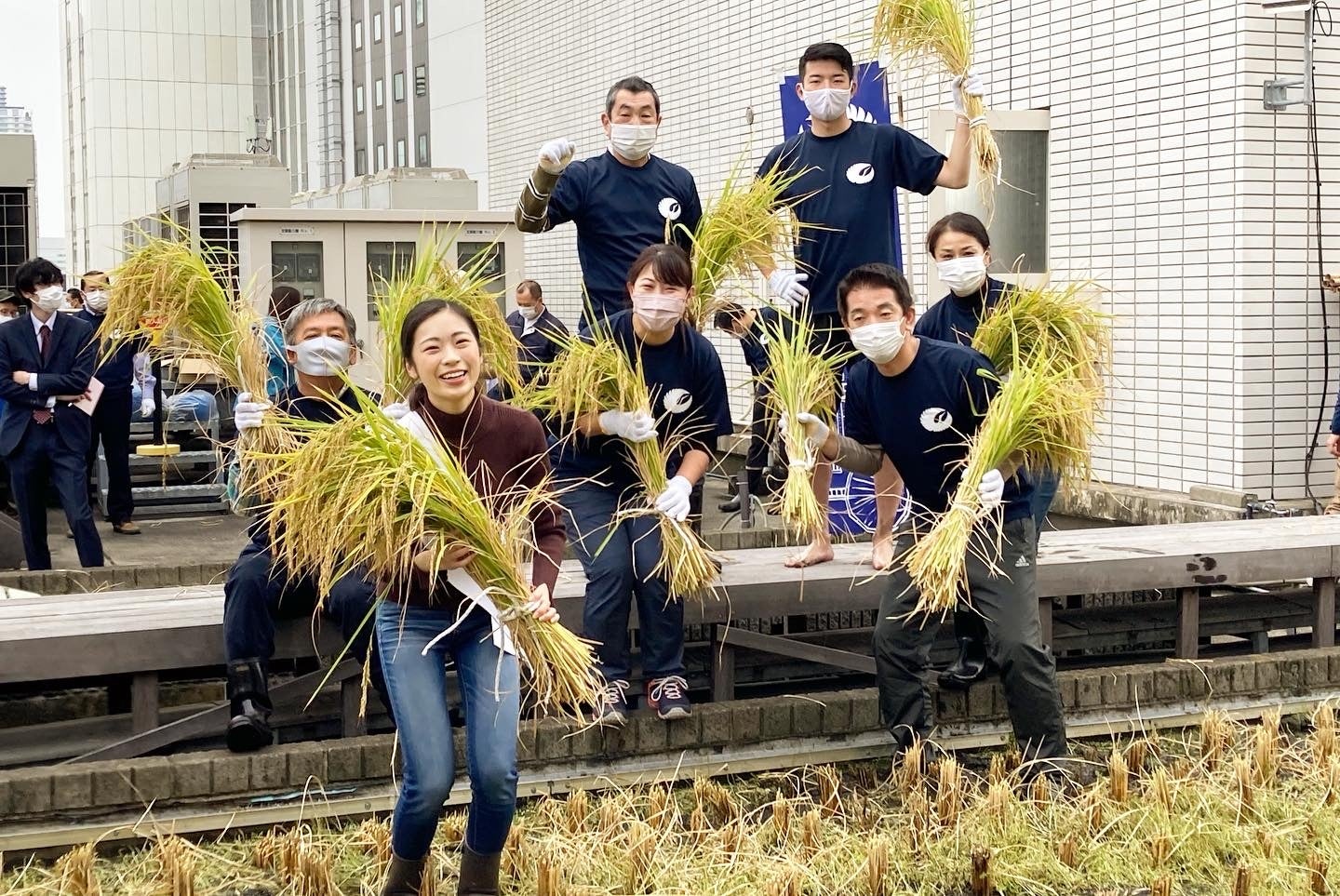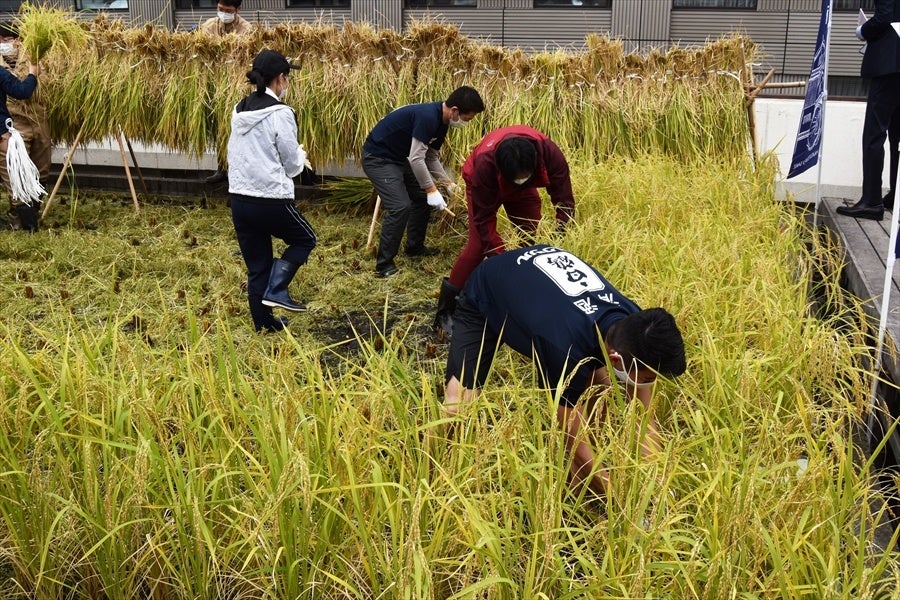 白鶴酒造株式会社は、東京支社屋上の農園「白鶴銀座天空農園」で自社開発酒米「白鶴錦」の稲刈りを実施します。例年、一般のお客様や留学生に田植え・稲刈りを体験いただいておりましたが、コロナ禍で大勢の人が集まるイベントが難しいため、田植えに引き続き稲刈りも社員で行います。東京銀座にいながらにして日本の原風景ともいえる稲刈りで季節感を感じていただけると思います。