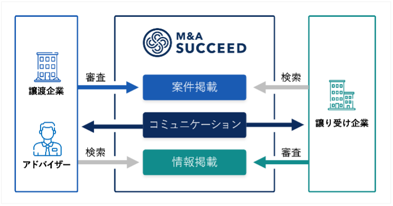 「M&Aサクシード」は、譲渡企業と譲り受け企業をオンライン上でつなぐ法人・審査制M&Aマッチングサイトです。譲渡企業は「M&Aサクシード」に会社や事業の概要を匿名で登録でき、譲り受け企業はその情報を検索して閲覧できます。譲り受け企業は興味を持った譲渡企業へ直接アプローチできるため、譲渡企業にとっては、潜在的な資本提携先の存在や、自社の市場価値を把握するきっかけになります。これにより、譲渡企業は経営の選択肢の一つとしてM&Aを早期から検討でき、経営者の選択肢が広がります。2017年11月にサービスを開始し、全国の譲渡案件が累計13,400件以上(掲載中4,800件以上)登録され、利用中の譲り受け企業は8,200社以上です(2022年8月時点)。URL:https://ma-succeed.jp/
