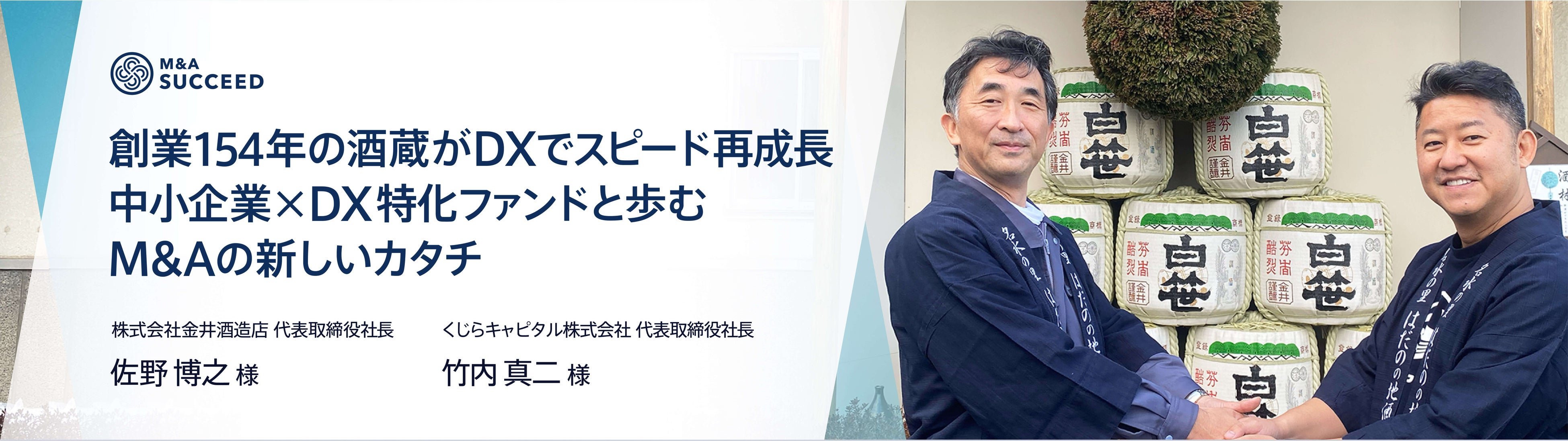 Visionalグループの株式会社M&Aサクシード(所在地:東京都渋谷区/代表取締役社長:金 蓮実)が運営する法人・審査制M&Aマッチングサイト「M&Aサクシード」(https://ma-succeed.jp/)を通じて、くじらキャピタル株式会社(所在地:東京都港区/代表取締役:竹内 真二様)及びその運営ファンドである くじら1号投資事業有限責任組合(以下、総称して「くじらキャピタル」)は、清酒酒造・販売の株式会社金井酒造店(所在地:神奈川県秦野市、略称:金井酒造店)の酒造事業を2021年10月に取得しました。くじらキャピタルは、デジタル変革で中小企業の再成長を支援する日本初の「DXファンド」で、取得日当日にECサイトを立ち上げ、管理・営業部門から醸造工程に至るまで一気通貫でDXを推進。その結果、金井酒造店の年商は前年比1.2倍、赤字は半減し、すでに黒字化が視野に入るなどスピーディーに再成長しています。日本酒の酒蔵の廃業が急増するなか、本事例は、「生産性向上の必要性」と「後継者難」という中小企業の二つの問題を一気に解決する革新的なモデルです。