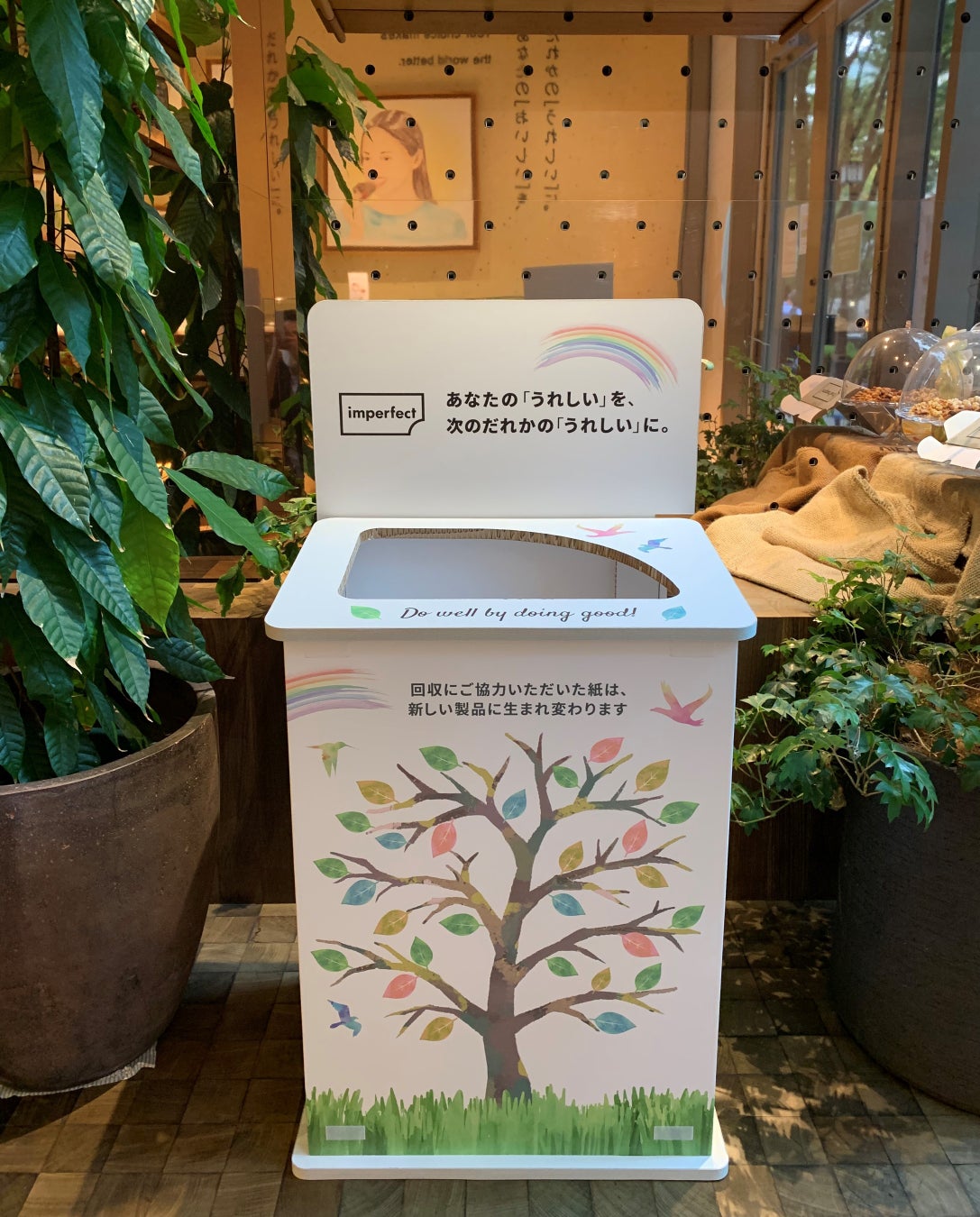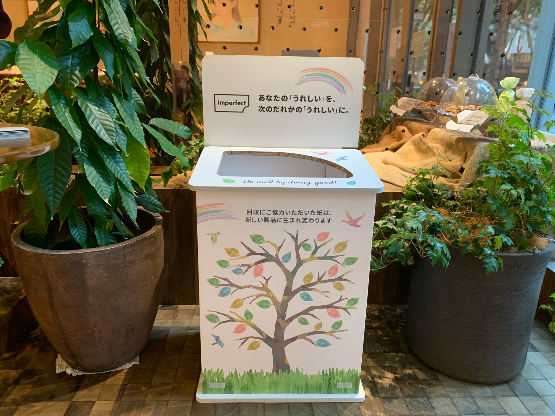 imperfect表参道店舗に設置した回収ボックス。全て紙でできています。