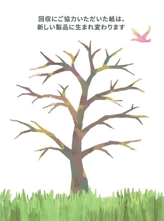 店舗に設置する回収ボックスには、木のイラストが描かれています。回収にご協力いただいたお客さまには、その木に葉っぱをかたどったシールを貼っていただくことで、お客さまと一緒に生い茂った賑やかな森を作り上げる予定です。