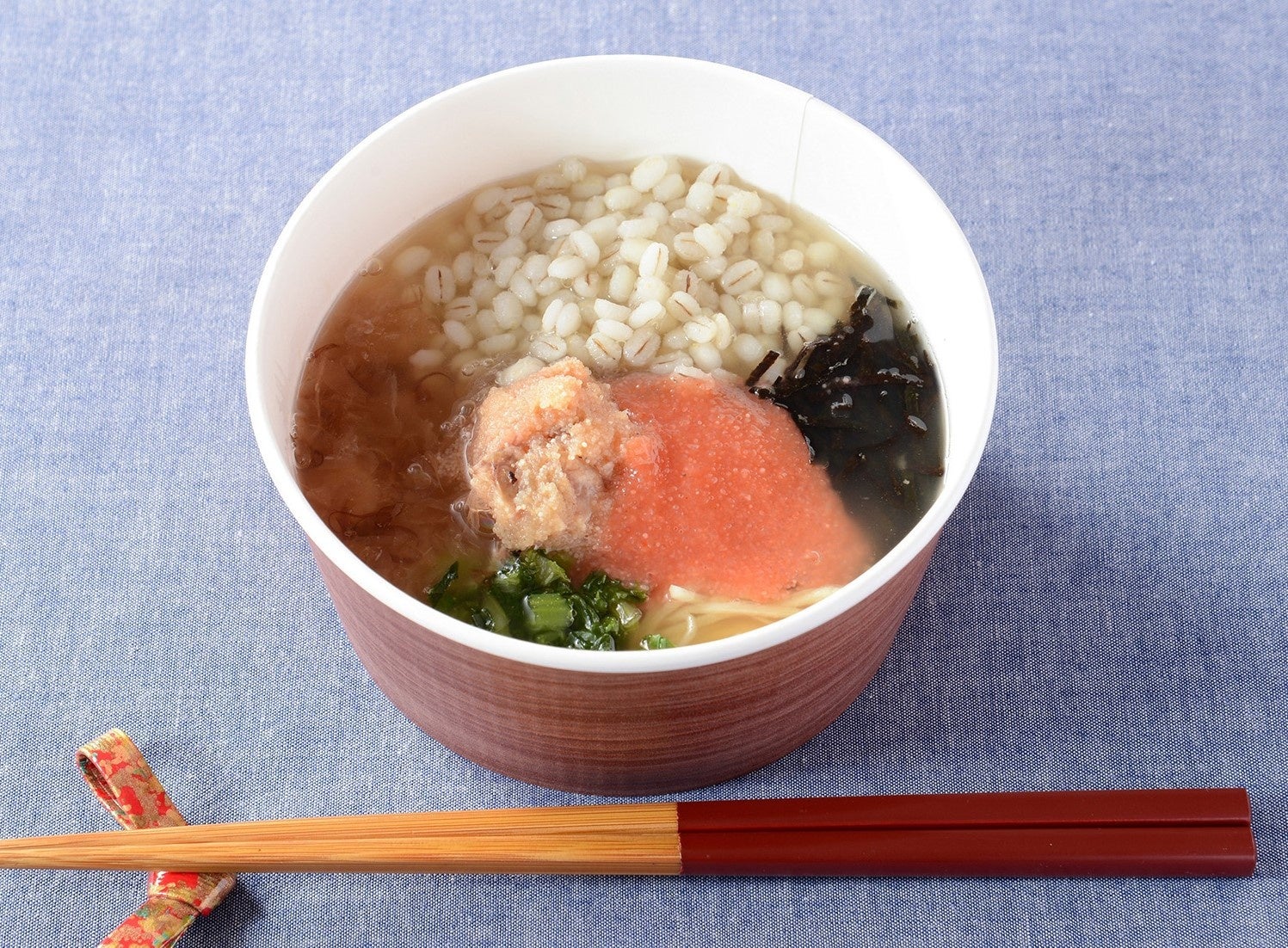 東京たらこスパゲティ監修初となるお茶漬け「生姜香る明太子のお出汁茶漬け」は、炙りたらこと明太子のプチプチ食感、押し麦のもちもち食感がアクセントのお茶漬けです。寒い時期にぴったりな生姜がやさしく香るお出汁でホッとする商品に仕立てられています。