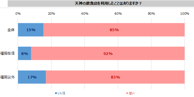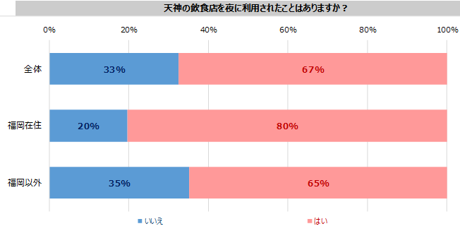 2.天神の飲食店利用率は85%、夜外食は県民80%、県民以外が65%