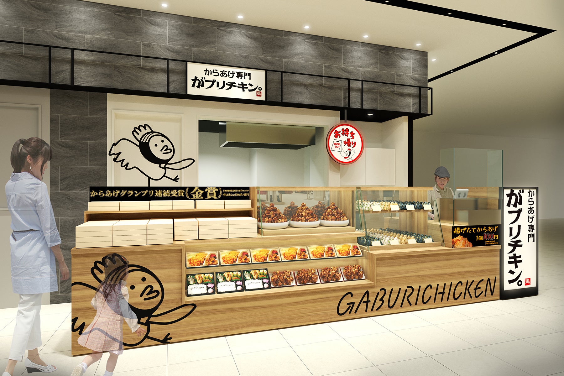 「ラゾーナ川崎プラザ店」では、名物の「金賞 からあげ」を量り売りにて販売。また当店限定メニューとして、人気商品「かけるチキン。にんにく醤油」を使用した大きな“がブリ”つきサイズのおにぎりの他、からあげ弁当のパッケージを一新するなど、“見て” “食べて”楽しめる豊富なラインナップをご用意いたしました。お昼ご飯に、夕飯のあと一品にと、様々なシーンでお楽しみください。