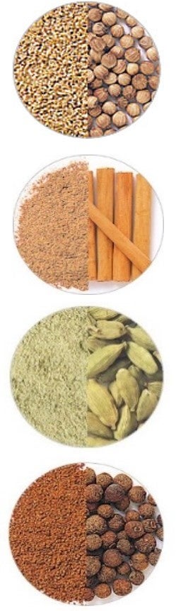 中世ヨーロッパの人が珍重したブラックペパー、ナツメグ、シナモン、クローブの中で、ブラックペパーを除く3種のスパイスの香りを持つことからこの名がつけられたといわれています。肉にも甘いものにも合う“万能スパイス”で、幅広い料理に使えます。