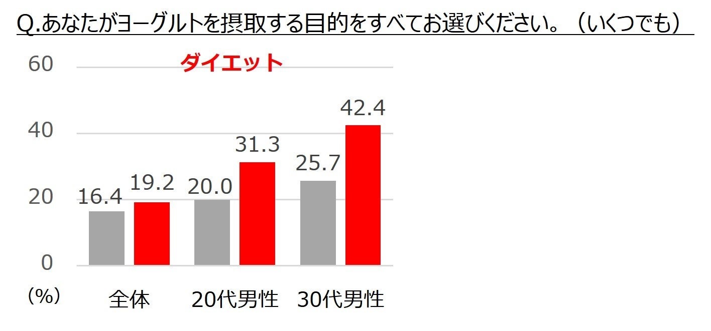 5)20代・30代「タンサ活」男性のヨーグルト喫食目的は、ダイエットや抗肥満の意識が高い