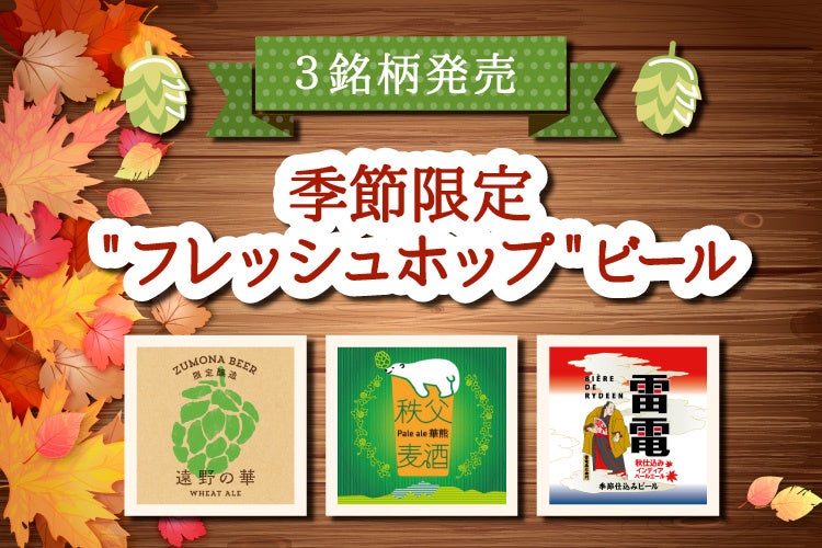 この度、季節限定"フレッシュホップ"ビール3銘柄を発売いたします。年に一度しかつくることのできない生のホップならではの青々とした鮮烈なホップの香りを、家庭用本格ビールサーバーでお楽しみいただけます。