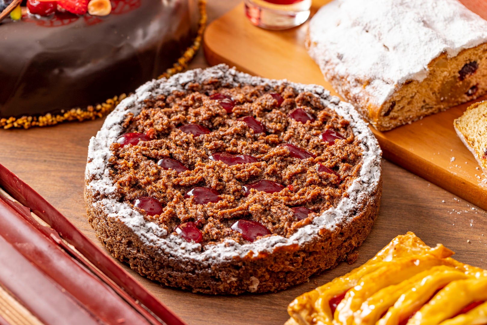 アーモンドパウダーに、シナモンやココアパウダーなどを混ぜ合わせて、トップにラズベリージャムを格子柄にたっぷりとのせて焼いた風味豊かなオーストリアのタルト。