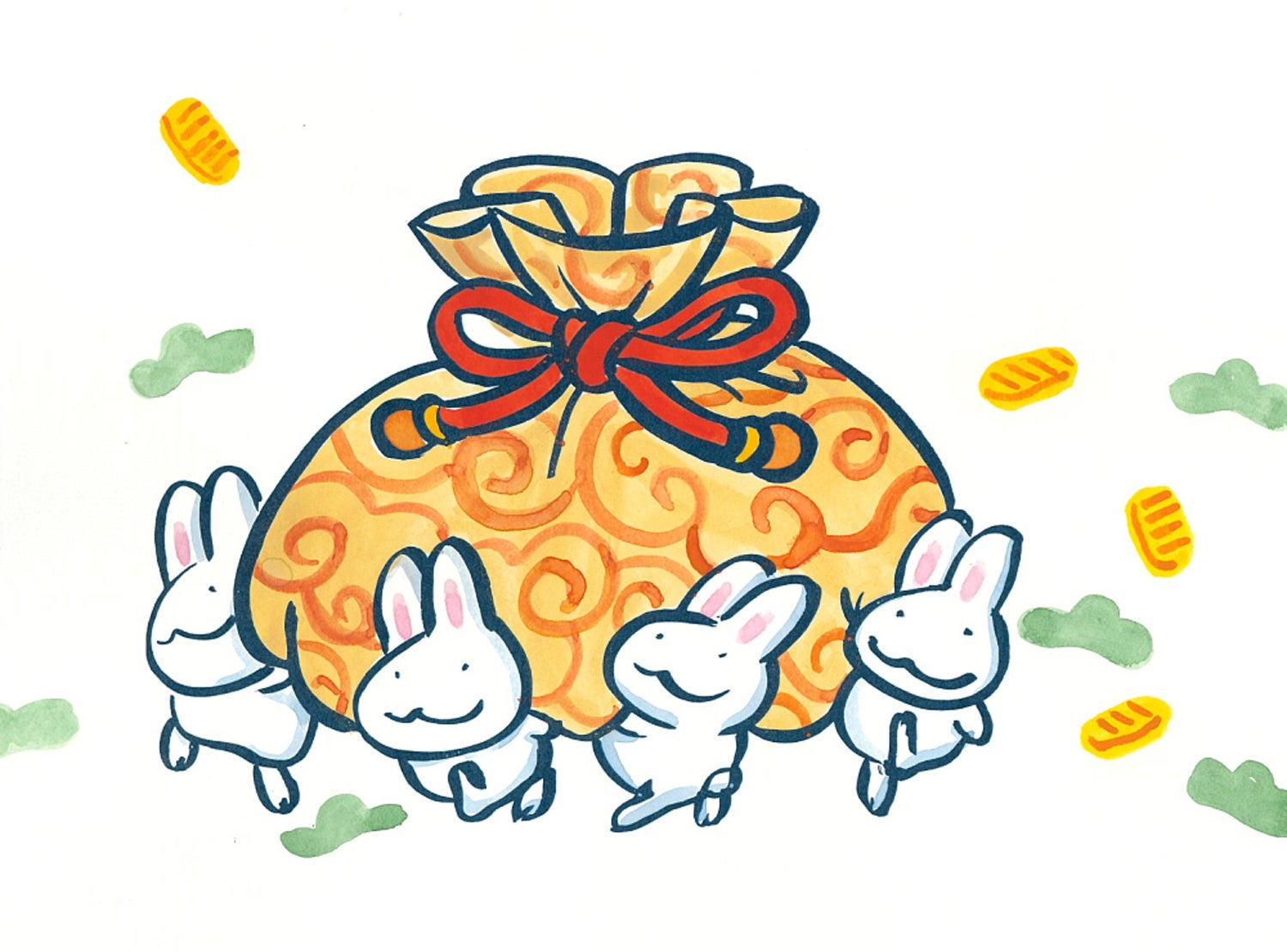 創業1959年、⼭科に⼯房を設⽴した京都小田益。遠く垂仁天皇の頃から続く素焼きの⼈形をルーツとした京陶⼈形を伝承。雛⼈形、五⽉⼈形、縁起物、⼲⽀⼈形を⼿描き⼿づくりで京都らしさを表現しています。古来より白いウサギは神聖な生き物で神様の使いと言われています。来年の干支、ふくよかな白い卯に寶尽くしの紋様を描いた、おめでたい干支人形をご用意しました。