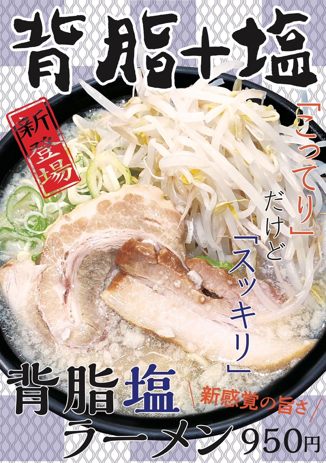 ラーメンあらいの新メニュー、ボリューム満点!背脂塩ラーメンがデリバリー可能になりました。新感覚の旨さをぜひご家庭で味わってみてはいかがでしょうか?