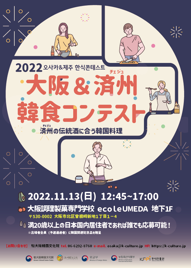 大阪韓国文化院、「済州島の伝統酒に合う韓国料理」をテーマに、『2022大阪&済州韓食コンテスト』開催!コンテスト 出場者 絶賛募集中!