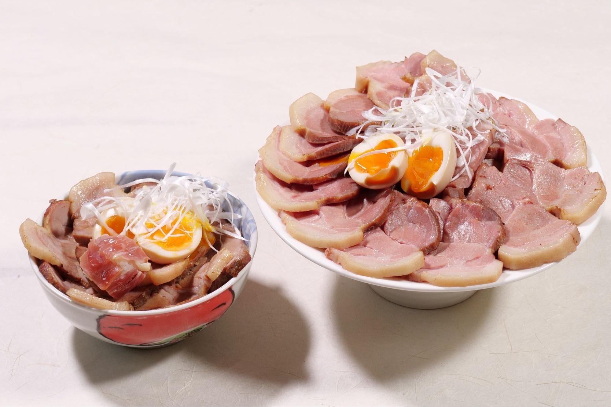 もともとグルメメディアの編集長をしており、様々な料理・メニューに触れてきた中で、今回コンセプトに設定したのは「分かりやすさ」。お店の名前も、メニューも難しい事を考えずにシンプルに楽しめるものを考えました。オープン時のメニューは「ブタ丼」のみ。ただし、レギュラーサイズで総重量2kgというデカ盛りです。低温調理で柔らかくジューシーに仕上げた豚肉をたっぷり乗せた丼に、味変のタレを「赤・白・黒」と複数ご用意しています。