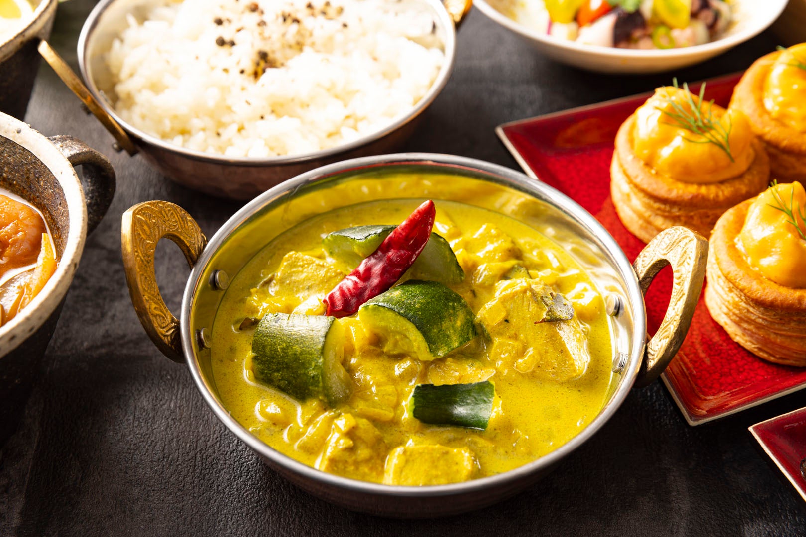 モルディブのフィッシュカレー「マスリハ」。鰹の旨味とスパイスやハーブの辛味や香りが混ざり合い、ココナッツミルクの甘さや香りが全体を包み込んだカレーをズッキーニと共に仕上げました。ジャスミンライスと一緒にお召し上がりください。