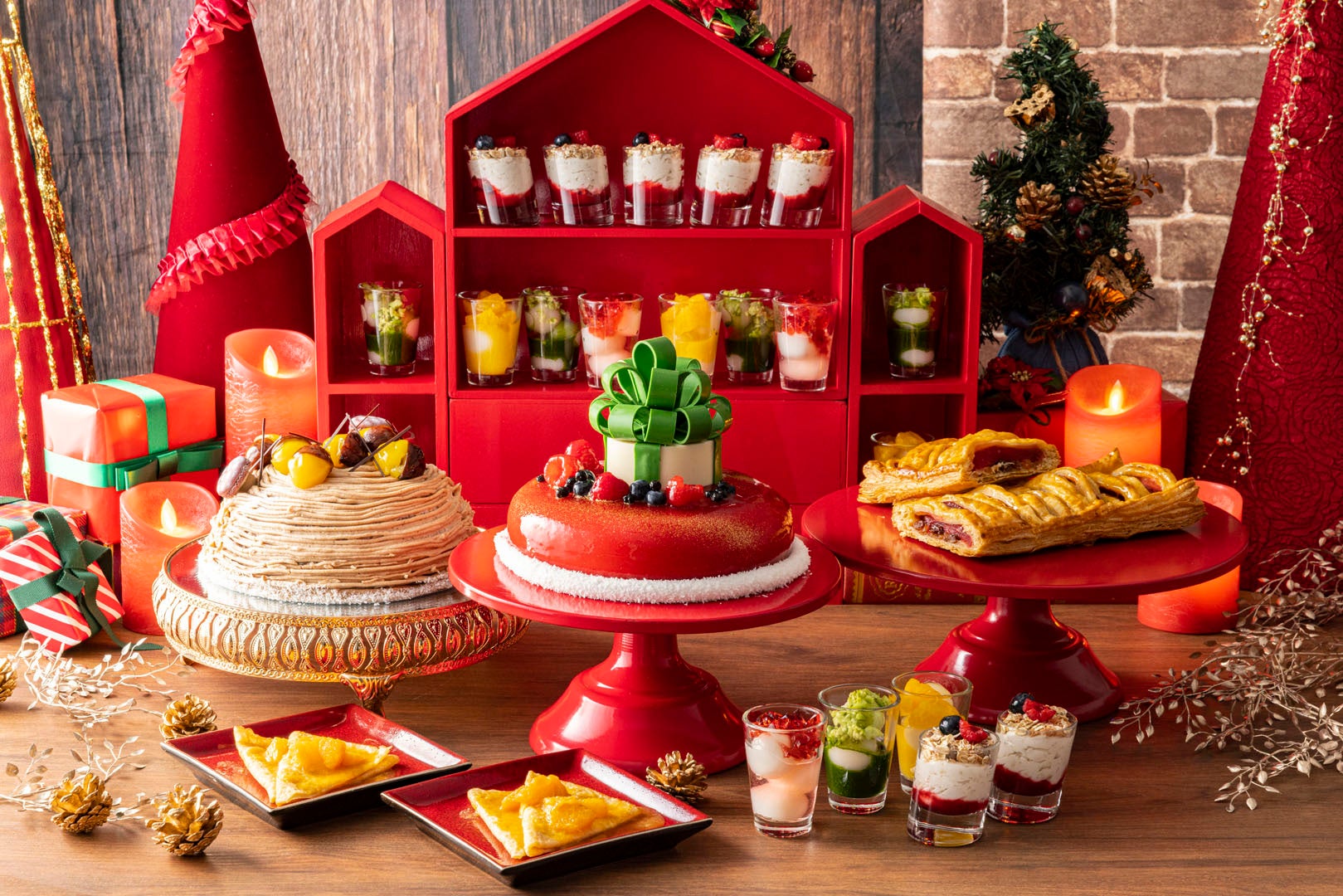 スイーツコーナーでは、同日から開催のスイーツビュッフェ「Santa’s Christmas Tea Party」より、おすすめのスイーツ5種類と、人気のスイーツライブステーションではシェフがその場で調理してご提供する「クレープシュゼット」をご用意しました。