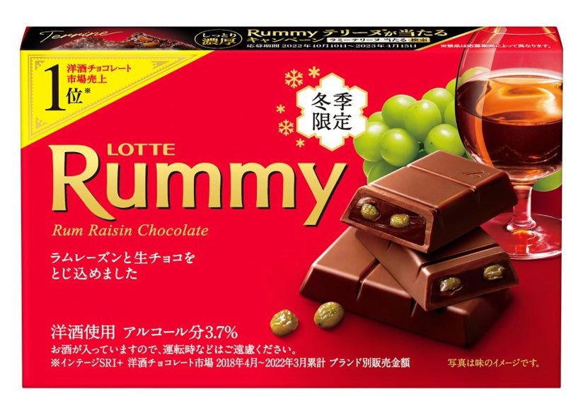 みずみずしいラムレーズンとしっとりした生チョコをとじ込めた香り豊かな大人の本格洋酒チョコレート。1965年の発売以来、愛され続けるロングセラー商品です。