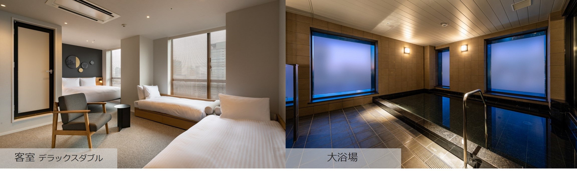 客室はシングルルームから4名様利用可能なファミリータイプまで全7タイプをご用意。木のぬくもりを感じられる空間を演出します。大浴場では、熱湯(あつゆ)と普通湯2つの湯温をお楽しみいただけます。
