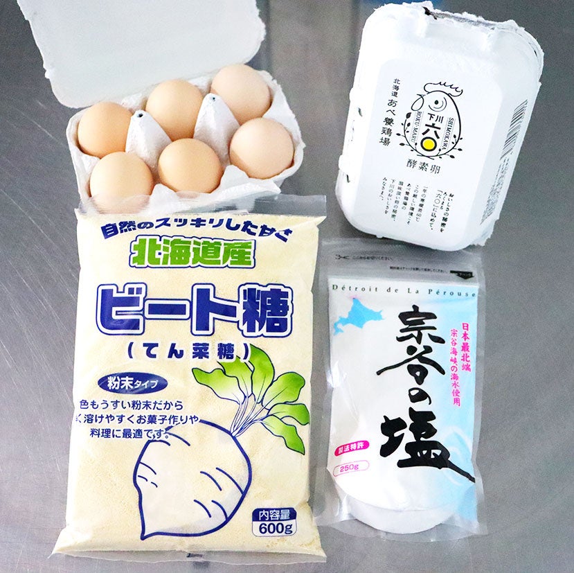 ■卵 「下川六〇酵素卵」 飼料に酵素や乳酸菌を配合し、ニワトリの健康を第一に考えた安心・安全な卵を使っています。(北海道上川郡下川町産)