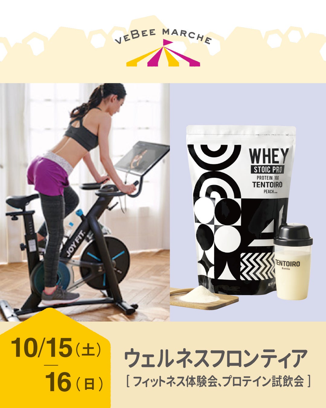 おいしいおやつを食べた後は軽く運動を!家庭用フィットネスバイクFITBOXの試乗や、12時、14時と体験ミニレッスンを開催予定です。体験会参加者にはウェルネスフロンティアが研究開発したオリジナルプロテイン「TENTOIRO」の試飲もできます。是非ご参加ください。