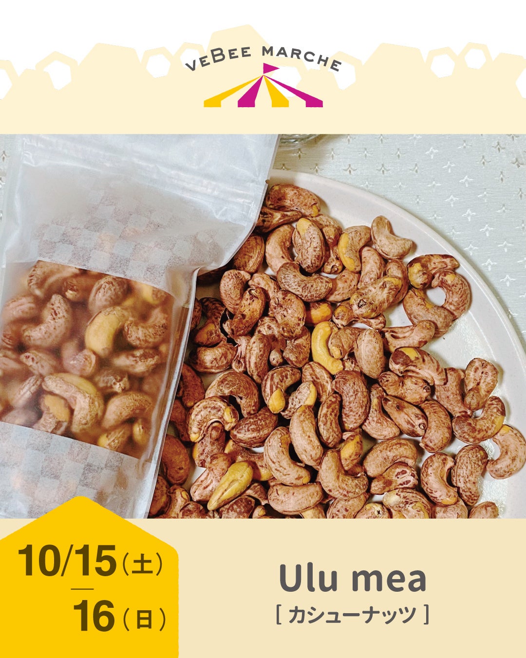 シューナッツの販売を行っているUlu meaさん。ベトナムで栽培された甘さと薄皮の香ばしさを感じる大粒のカシューナッツを持ってきてくれます!販売を通して、就労支援や地域活性化にも取り組んでいるそうです。veBeeアプリのサービス券で嬉しいディスカウントも!