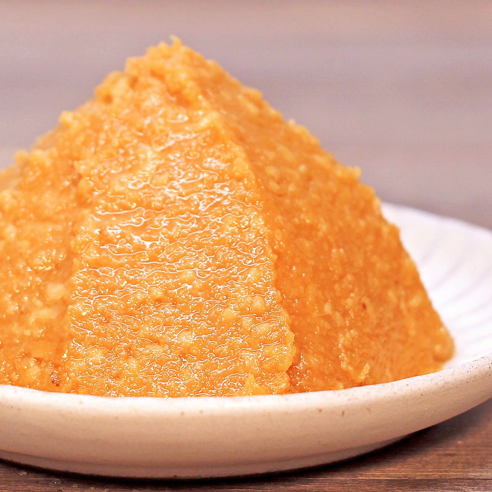 70%に精白した岡山米で造られた贅沢な麹をたっぷり 15 割使用。 さらに国産大豆の皮を磨きとり、木樽で仕込み半年以上じっくりと天然熟成させた味噌です。 雑味の無いさっぱりとして清純な甘み、大吟醸酒のようなフルーティーな香りを楽しめます。