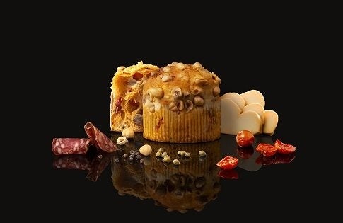 柔らかい生地と贅沢な食材の旨味を十分にお楽しみいただける「パネットーネ・サラート」は、イタリアを代表する食材、サラミ、スカモルツァ・アフミカータのスモークチーズ、ケッパーの酢漬け、ドライチェリートマトを混ぜ合わせた生地に、ピエモンテ産のヘーゼルナッツ、ポレンタと呼ばれるトウモロコシの粉、そして、グラナパダーノの粉チーズ をトッピングし、香ばしく焼き上げました。