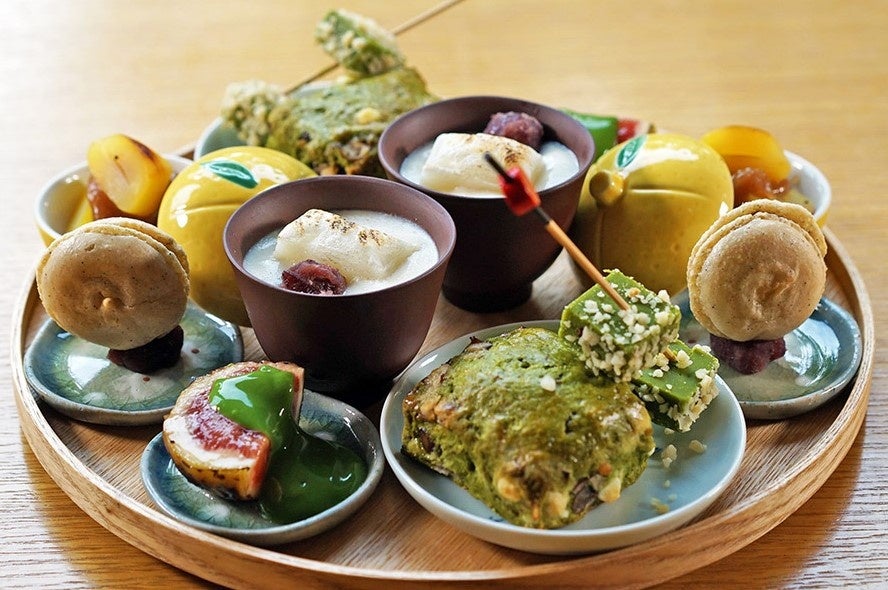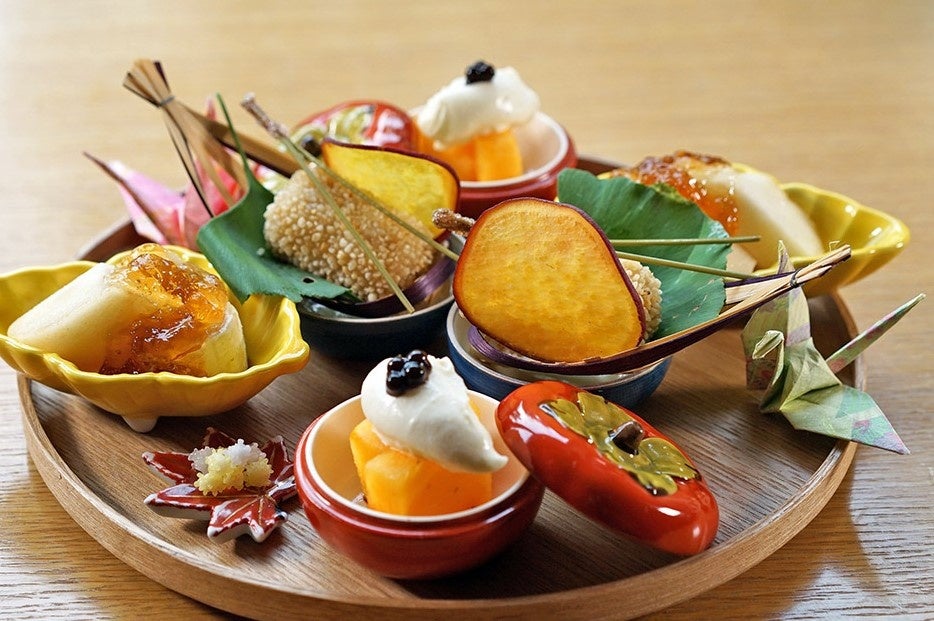【メニュー】季節の食材を贅沢に使用した甘味と、和セイボリーを楽しめる趣向を凝らした19品