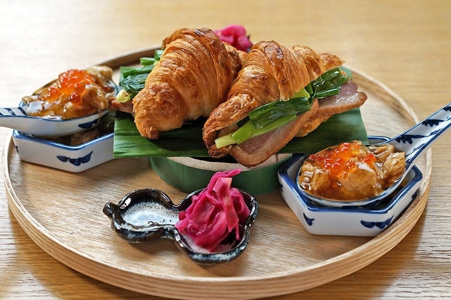 ■鴨葱のクロワッサンサンド:板前の遊び心で鴨・葱・味噌をクロワッサンに合わせました。