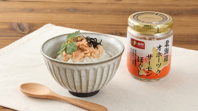 また、大粒のあらほぐしにするため、一つひとつの作業を手作業でほぐす「手ほぐし」仕立てとなっており、身の大きさと食べ応えが自慢です。お弁当はもちろんの事、お茶漬けやおにぎりの具材としてもオススメで、色々なお料理に幅広くお使いいただけます。バイヤーのこだわりがたっぷりと詰まった「北海道オホーツクサーモンほぐし」。ぜひ、お試しください。