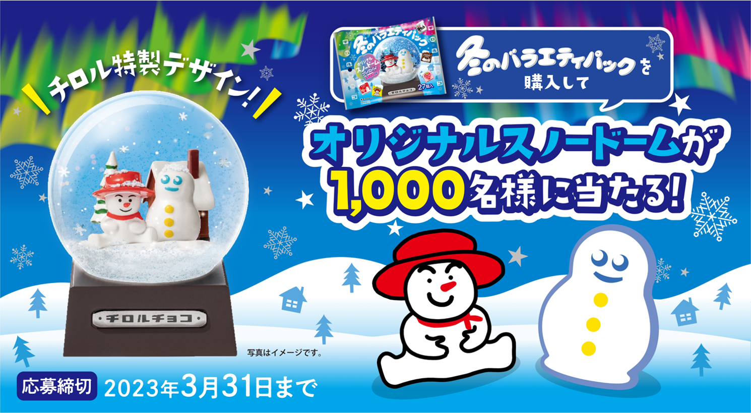 ご」に加え、冬ちろる・ホワイトビス・いちごマシュマロの全5種類が楽しめるアソート商品です。