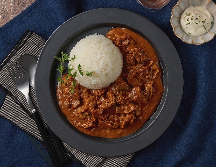 牛ばら肉やソテーオニオン、チャツネを特製のカレーソースで煮込んだ、スパイスの風味豊かな欧風ビーフカレーです。