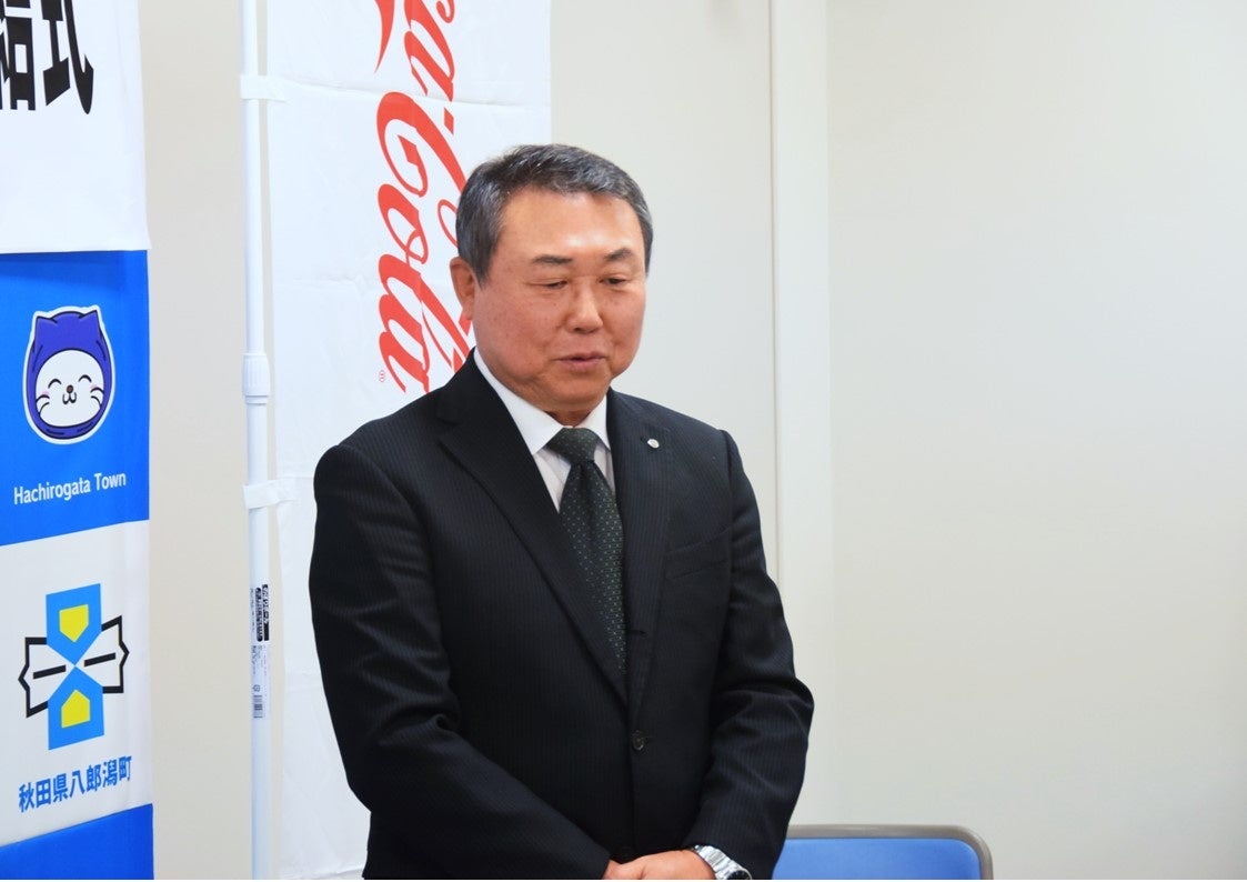 「北東北を拠点に事業を展開する当社は、協定に基づき、迅速に飲料を配送することが可能で、貴重なライフラインとなる飲料をいち早く被害にあわれている方の手に届けることは、企業の社会的使命だと考え、各市町村様と本協定の締結を進めております。本日このように八郎潟町様と本協定を締結できたことは大変喜ばしく、このたびの協定を契機に、今後も強力なパートナーシップを築くことで、有事の際だけではなく、日ごろから市民の皆さまの一助となるような施策を検討できれば幸いでございます。」