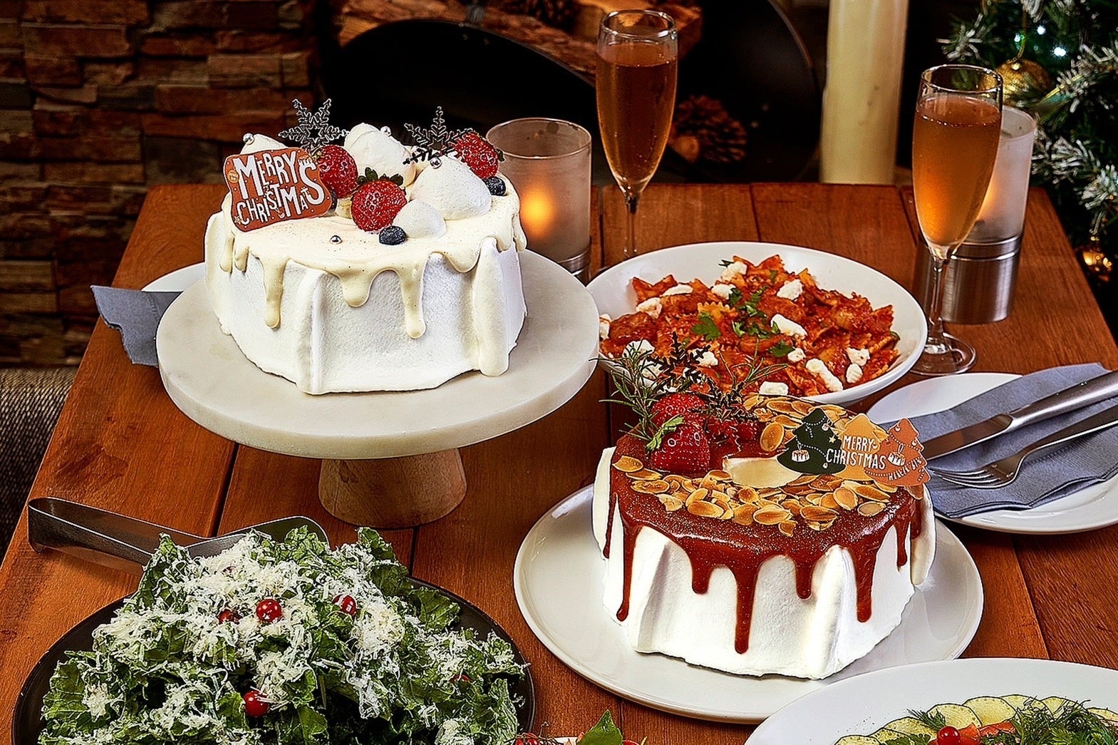 王道の中にも遊び心は忘れず、ゴールドラメが煌めく生キャラメルソースとフレッシュなイチゴ、オリジナルデザインのトッパーで、クリスマスらしい特別感を感じられる華やかなデコレーションに仕立てました。