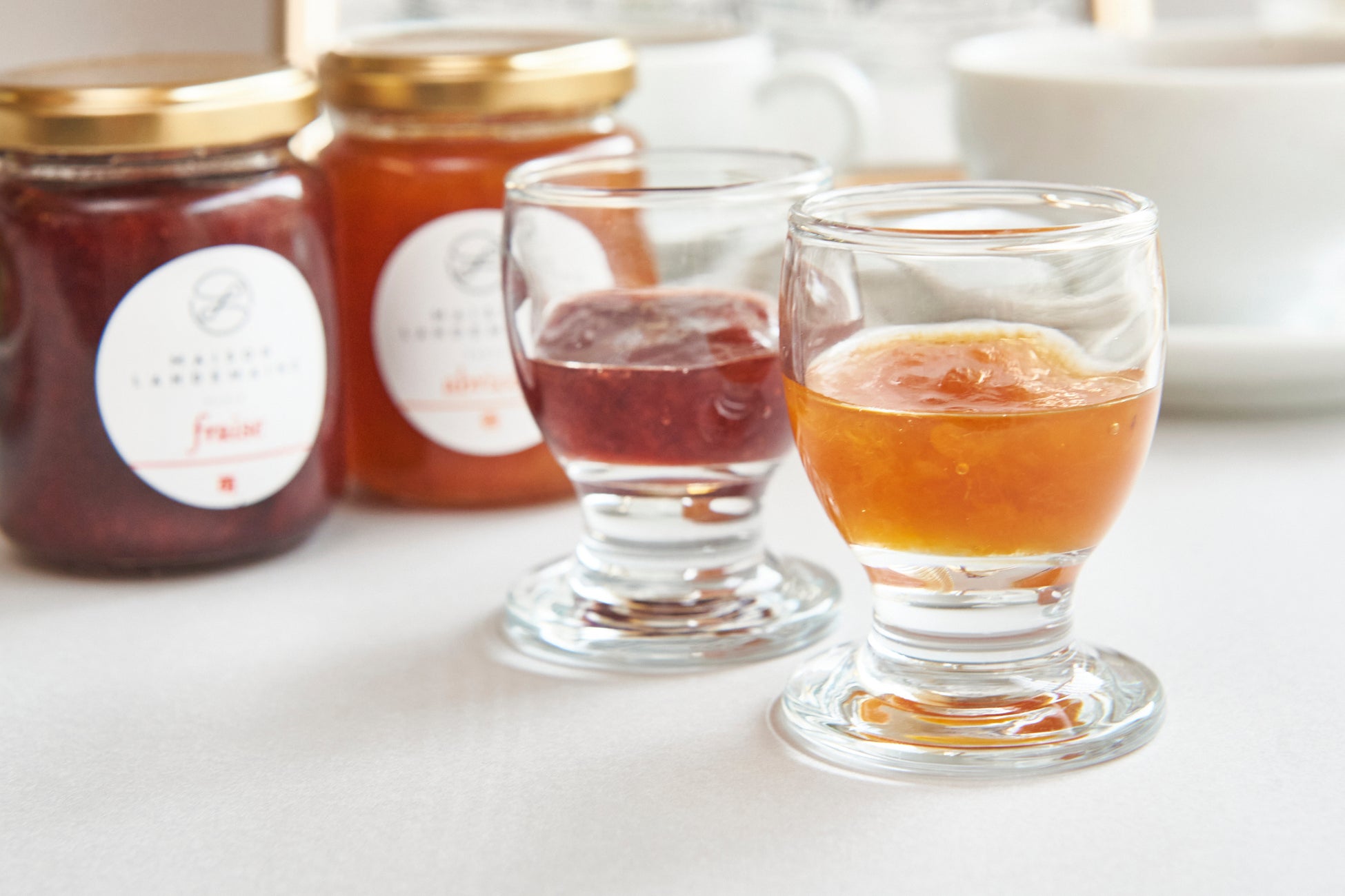 銅鍋でじっくり炊き上げた⾃家製コンフィチュールはフルーツの濃厚な美味しさが魅⼒です。その日のおすすめを2種類ご⽤意しております。パンやモンブランにペーストしたり、お茶うけとしてお召し上がりください。