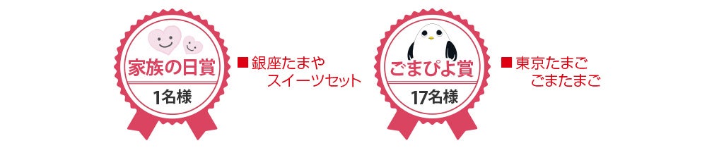 ・銀座たまや賞:1名様 ごまたまごグッズ(ごまたまごベア(小)&その他グッズ)、銀座たまや暦(東京たまごシリーズ4種)