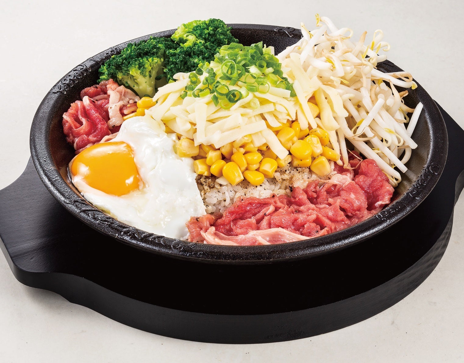 5種のトッピングをそれぞれ味わうもよし、全部混ぜてもよし、特製ステーキソースや調味料でお好みまで調整してからお召し上がりください。*1:コーンは増量