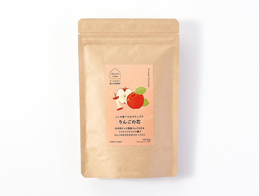 カットフルーツ工場で未活用だった国産りんごの芯をココナッツオイルで揚げ、りんごの甘さが引き立つチップスに仕上げました。