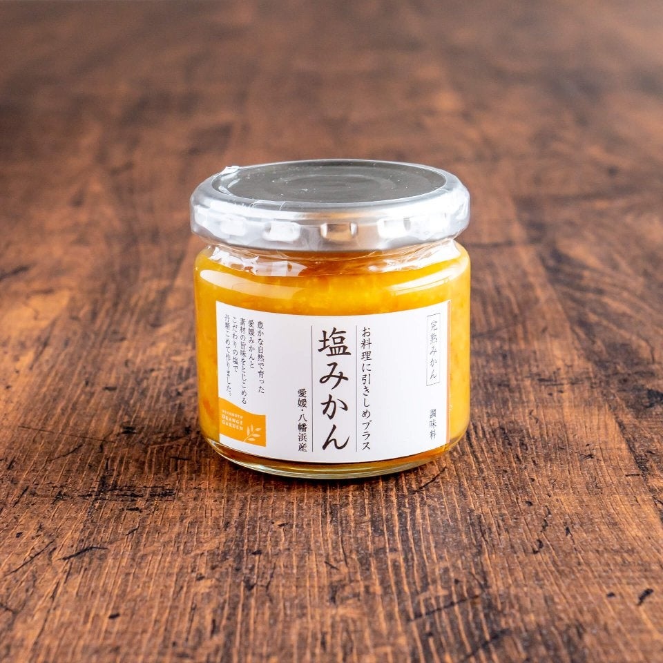 農作業で間引きし土に戻されるみかんを有効活用できないかという悩みから考案された、愛媛の新しい調味料「塩みかん」は、そのままでももちろん、いつもの調味料と置き換えたり、他の調味料と合わせることで、和洋中問わず使える万能調味料です。いつものお料理も「塩みかん」で表情豊かに爽やかに世界が変わります。