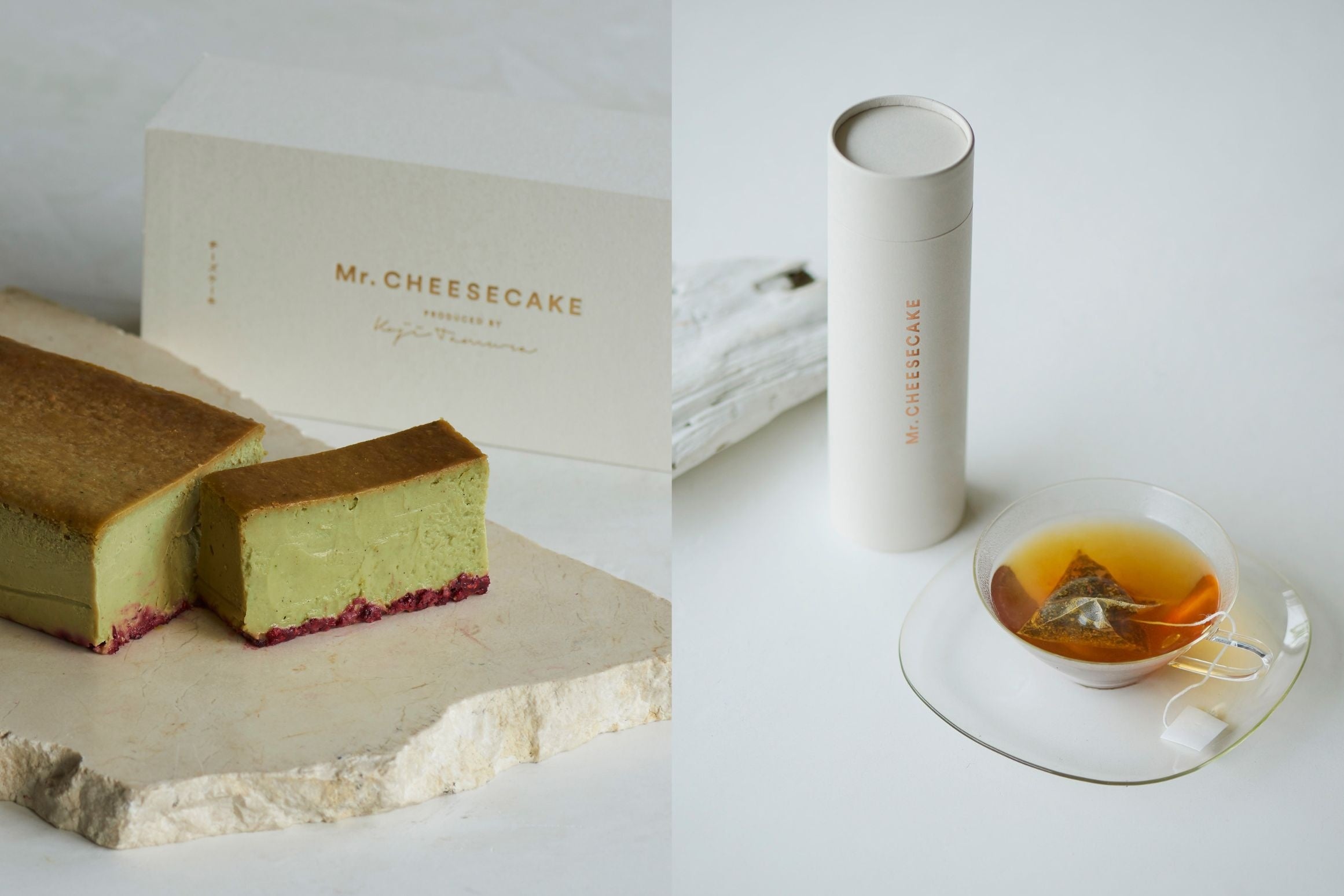 「Mr. CHEESECAKE pistachio raspberry」とオリジナルブレンドティーがセットになった商品。紅茶とのペアリングによって、Mr. CHEESECAKEをよりおいしく、より豊かな特別な時間としてお楽しみいただけます。