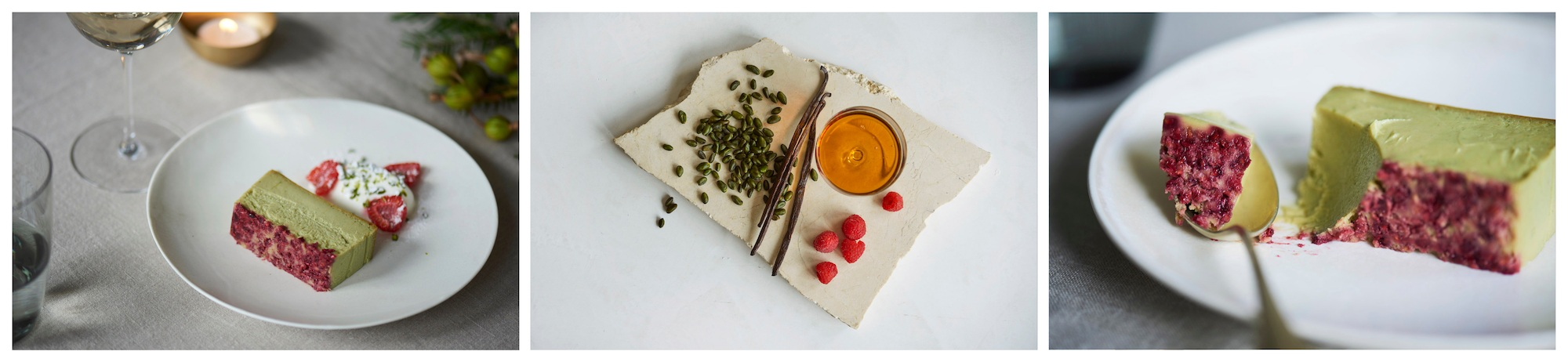 香ばしさとまろやかさのある深い味わいに酸味が加わった、華やかな装いの「Mr. CHEESECAKE pistachio raspberry」。そして、そのために開発されたオリジナルブレンドティーとともに、心あたたまるホリデーシーズンをお過ごしください。