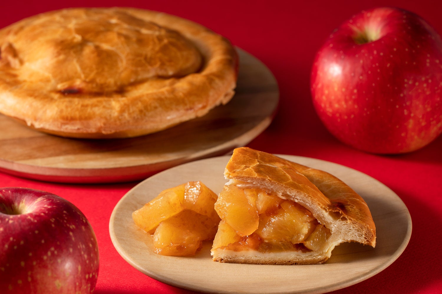 〈人気のアップルパイを店内で焼き上げ販売〉